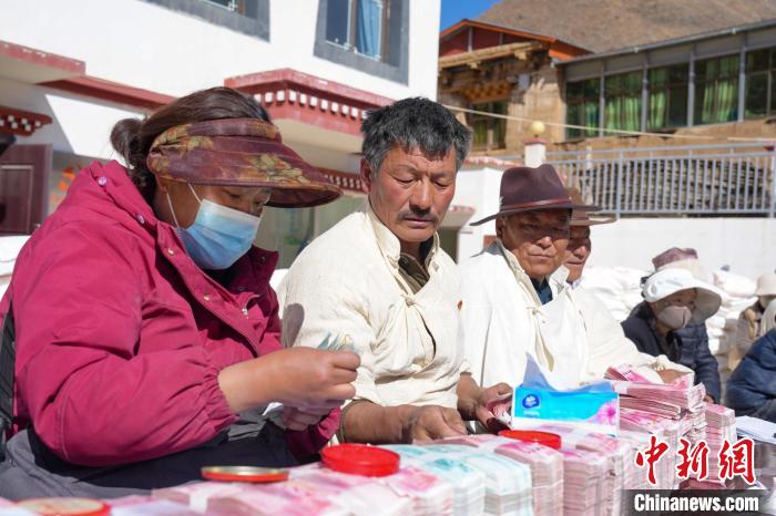 圖為分紅現場。普布朗杰 攝