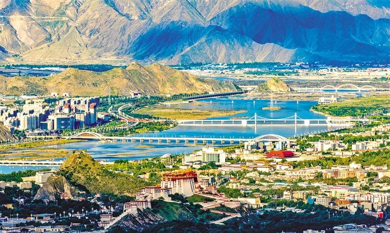 1965年8月25日,橫跨拉薩河的第一座大橋——拉薩大橋正式落成通車,結(jié)束了當(dāng)?shù)厝罕娍颗Fしざ珊拥臍v史。如今僅在拉薩市區(qū),就有柳東大橋、青藏鐵路拉薩河特大橋、和美橋、柳梧大橋、連心橋、迎親橋、拉薩大橋、藏?zé)岽髽颉⒓{金大橋等眾多大橋跨越拉薩河。拉薩河上的橋梁方便了人們的生活,扮靚了城市的風(fēng)景,也是西藏經(jīng)濟(jì)社會發(fā)展、交通基礎(chǔ)設(shè)施建設(shè)日新月異的見證。
