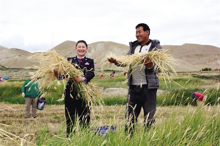 普蘭縣稅務干部走進田間地頭助力秋收。圖由自治區稅務局提供