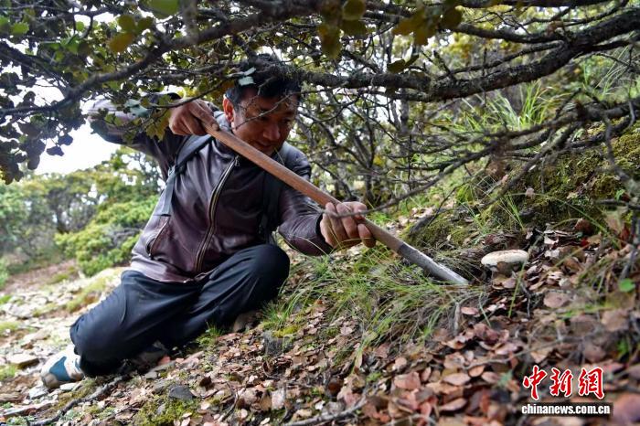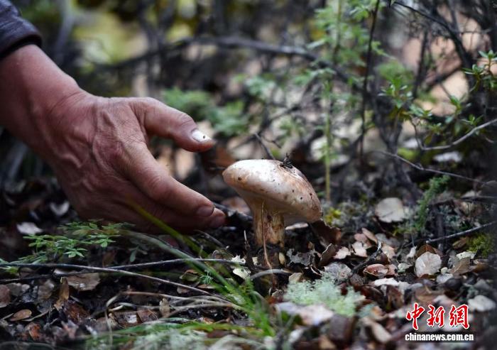 8月28日,五旬藏族“松茸獵人”扎稱在甘孜州鄉(xiāng)城縣色壩村挖松茸。中新社記者 王磊 攝