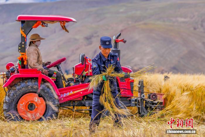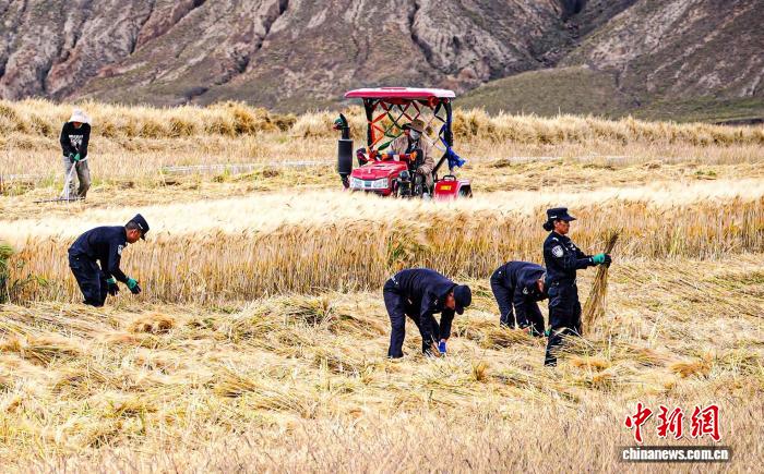 金秋時節,青稞飄香。23日,西藏日喀則邊境管理支隊涅如麥邊境派出所民警們深入田間,在廣袤的田野上,與農牧民一同俯身勞作,揮鐮收割,搶收青稞。