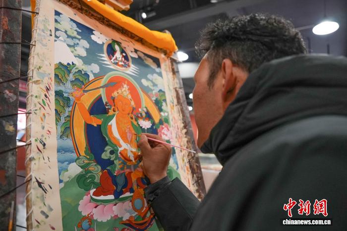 圖為西藏鄉村振興產品展示中心內的唐卡繪制體驗區。貢確 攝