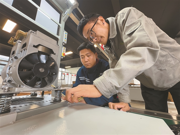 西藏清匠電器科技有限公司技術人員在車間組裝制氧設備。記者 白瑪澤旺 攝