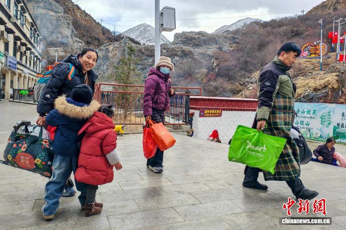 1月2日傍晚,陸續有民眾提著大包小包到達拉薩市墨竹工卡縣德仲溫泉,準備在此享受冬日的溫泉時光。中新社記者 江飛波 攝