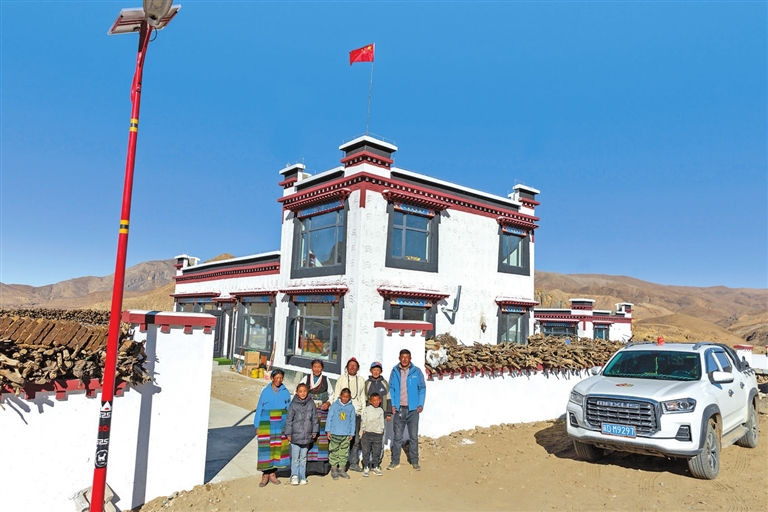 在昂仁縣卡嘎鎮薩律村,村民扎西加措一家正忙著布置新家。屋內,傳統的藏式彩繪已經完成;屋外,新定制的家具正一件件搬入。