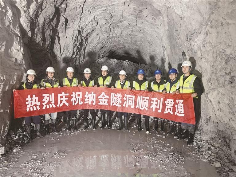 納金隧洞全長5036米,成型斷面為城門洞形,寬3.0米、高3.7米,采用鉆爆法從兩端相向開挖。隧洞穿越中高山地貌,最大埋深約640米,隧洞圍巖以Ⅲ類為主,Ⅳ、Ⅱ類次之。自開工以來,項目團隊科學組織、精細管理,克服了高海拔隧洞產(chǎn)生的巖爆和集中涌水等惡劣地質(zhì)環(huán)境,嚴格采取相應支護與封堵措施,連續(xù)5個月單側(cè)工作面月進尺超過200米,最高月進尺245米。后續(xù)納金隧洞工程將轉(zhuǎn)入隧洞混凝土襯砌施工,項目部將提前謀劃,精心組織,保證施工質(zhì)量與安全,做好轉(zhuǎn)序工作,確保納金隧洞首倉襯砌混凝土按計劃開倉澆筑。