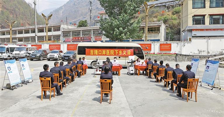 近日,日喀則市吉隆口岸醫院醫療團隊來到口岸國門,為戍邊民警提供健康檢查和診療服務。