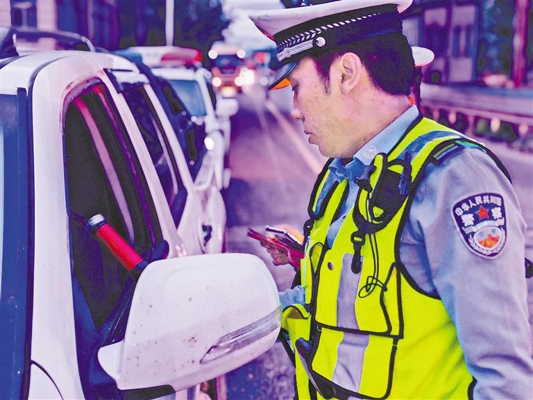圖為拉薩交警夜查酒駕現場。 記者 鹿麗娟 攝
