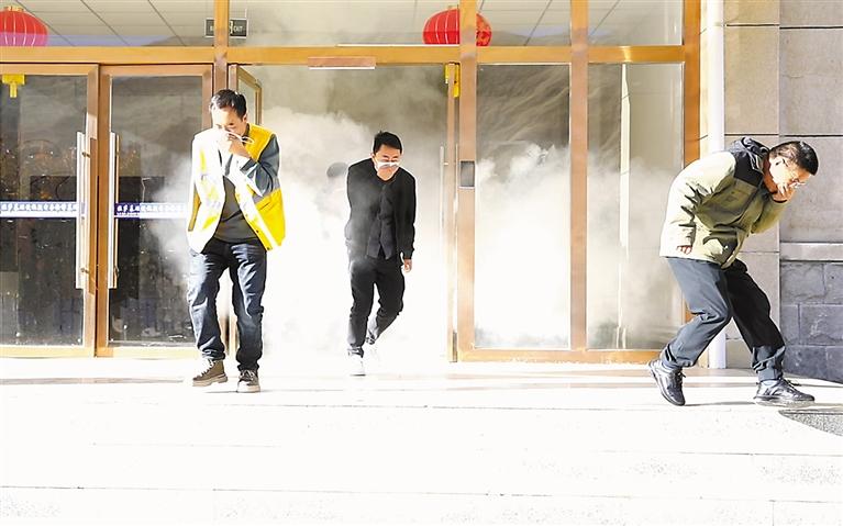 圖為干部職工進(jìn)行應(yīng)急消防演練。記者 旦增蘭澤 通訊員 拉巴次仁 攝