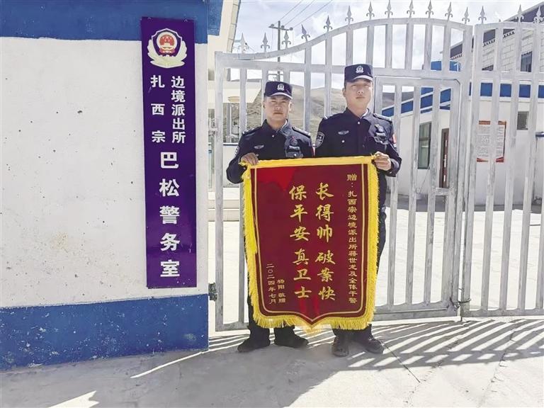 2024年10月12日,日喀則邊境管理支隊扎西宗邊境派出所收到了北京游客楊先生寄來的錦旗,錦旗上印著“長的帥 破案快 真衛士 保平安”。楊先生通過這樣的方式,對扎西宗邊境派出所民警快速反應、專業執法和熱情服務表示衷心的感謝。