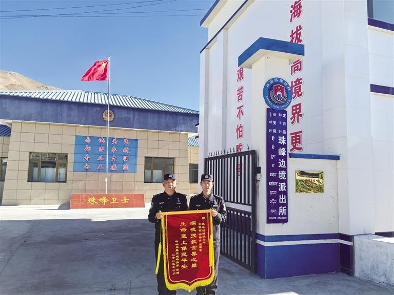 2024年10月2日,西藏環線旅行有限公司代表將一面印有“地球第三極 珠峰警中警 人民好警察 游客貼心人”字樣的錦旗送至日喀則邊境管理支隊珠峰邊境派出所民警手中,對珠峰邊境派出所積極幫助游客找回遺失物品,救助嚴重高反旅客,提供暖心服務表示感謝。