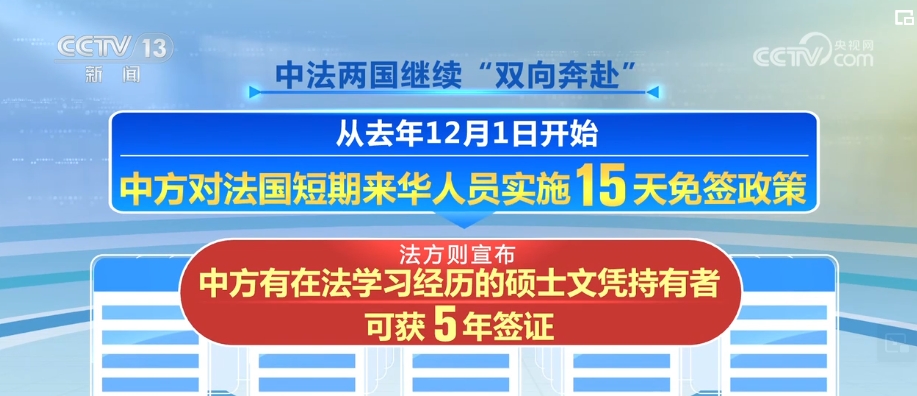 在中法文化旅游年之際,中法兩國繼續“雙向奔赴”。從2023年12月1日開始,中方對法國短期來華人員實施15天免簽政策,法方則宣布,中方有在法學習經歷的碩士文憑持有者可獲5年簽證。