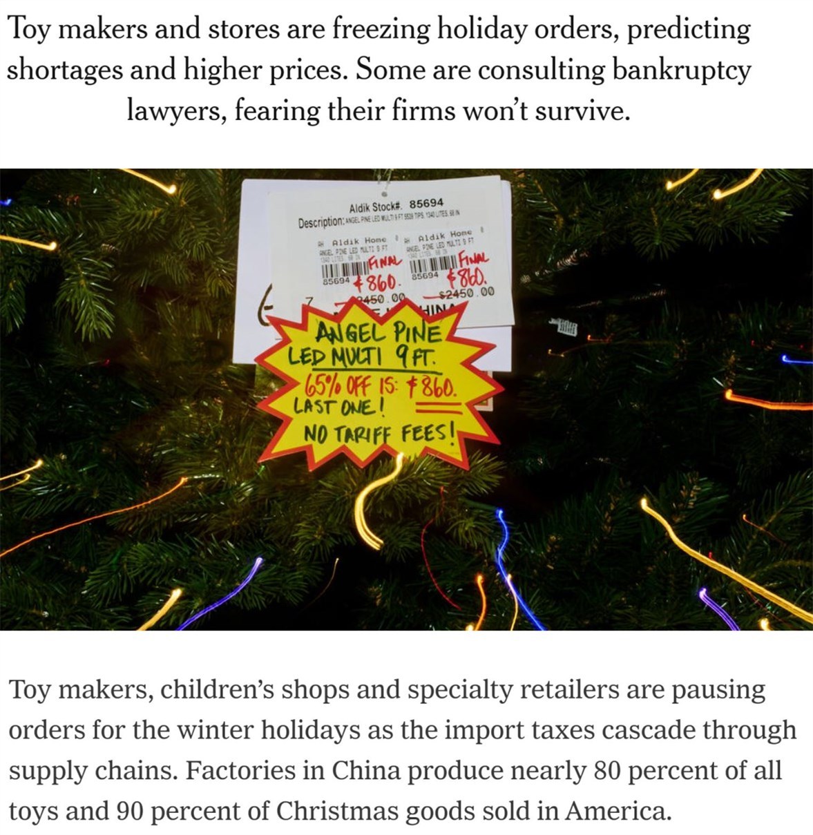 根據《紐約時報》的數據,全美近80%的玩具和90%的節日用品由中國工廠生產。