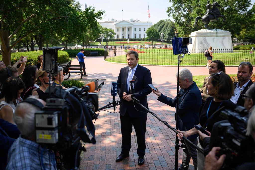 8月4日,德國副總理兼財(cái)政部長克林拜爾在華盛頓會(huì)見記者。新華社/法新