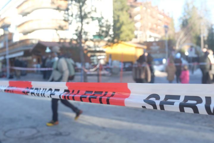 1月1日,在瑞士克朗-蒙大拿,警方在發生火災的酒吧附近區域拉起警戒線。新華社發(周玓珞攝)