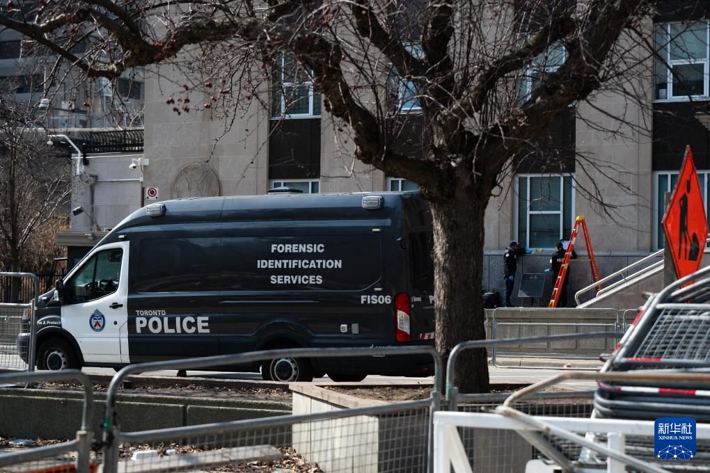 3月10日,警察在加拿大多倫多的美國駐多倫多總領館外勘察。新華社發(李海濤攝)