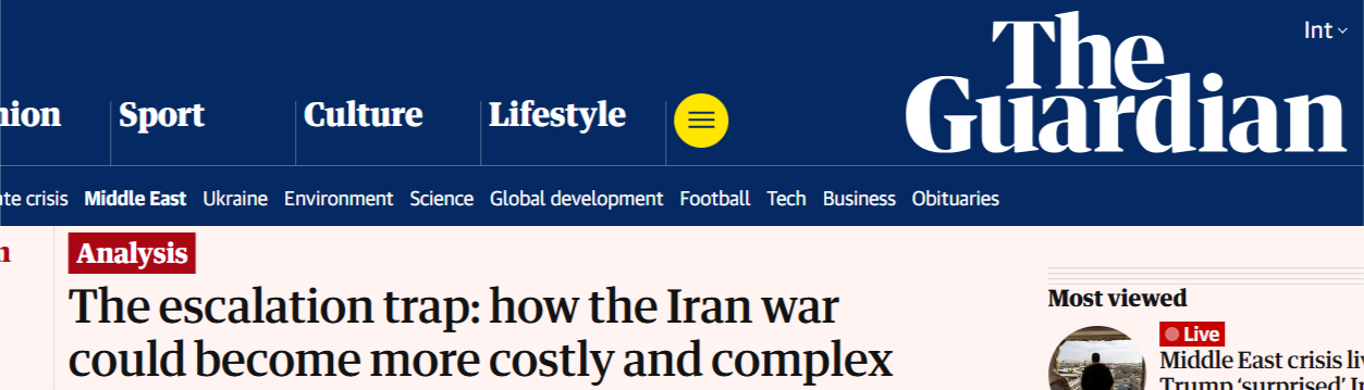報道援引為多屆美國政府提供政策咨詢的專家的話稱,美國政府已被最初的襲擊所迷惑,產生了一種基于武器精確性的“掌控錯覺”。這些“錯覺”促使戰爭進入升級模式,而這種模式將對全球經濟和政治產生更為廣泛的影響。