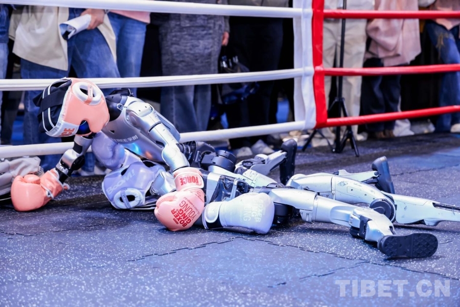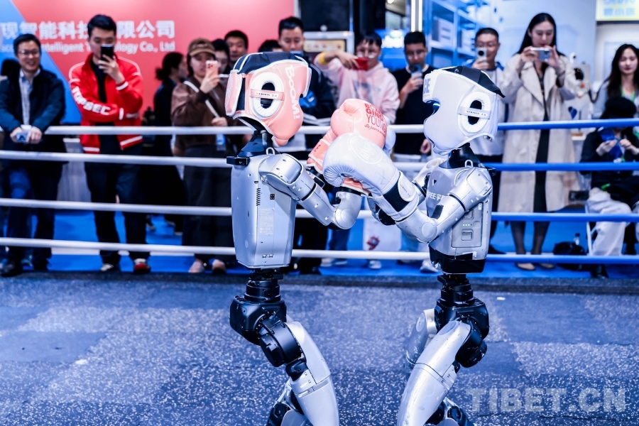 圖為兩位機器人拳手交替進攻,在靈活的站立攻防轉換中彰顯了最新的人工智能成果。