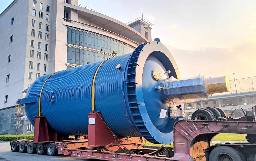 2024年1月3日,岷江實業集團生產的大型化工設備運輸出廠。(受訪者供圖)