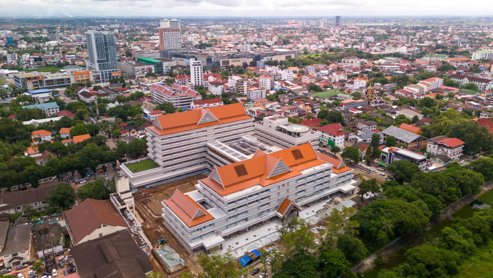 這是2024年9月11日在老撾首都萬象拍攝的中國援老撾瑪霍索綜合醫院(無人機照片)。新華社發(凱喬攝)