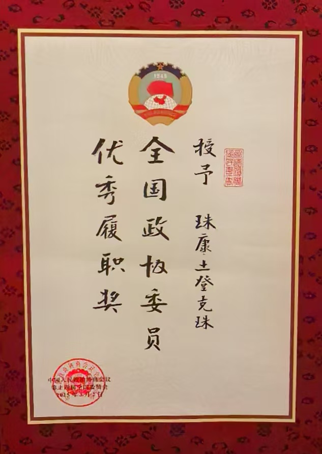 圖為珠康·土登克珠榮獲的2024年度“全國政協委員優秀履職獎”