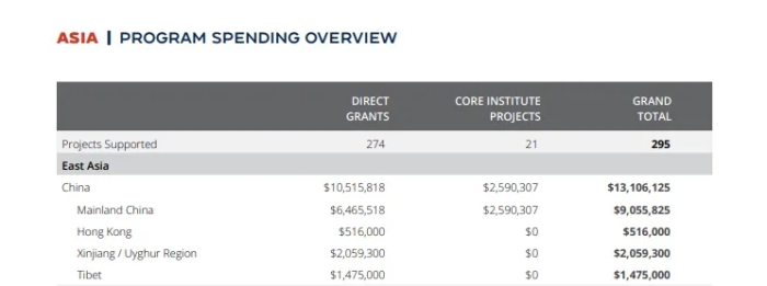 值得注意的是,近年來NED對中國的滲透不僅沒有收斂,反而在持續加碼。根據NED近日公布的2025年年度報告,其針對中國的專項投入已攀升至1300萬美元,位居全球第一,相比之前的1052萬美元增加近25%,美國的戰略意圖昭然若揭——遏制中國崛起已超越黨派分歧,成為美國兩黨的“政治剛需”。