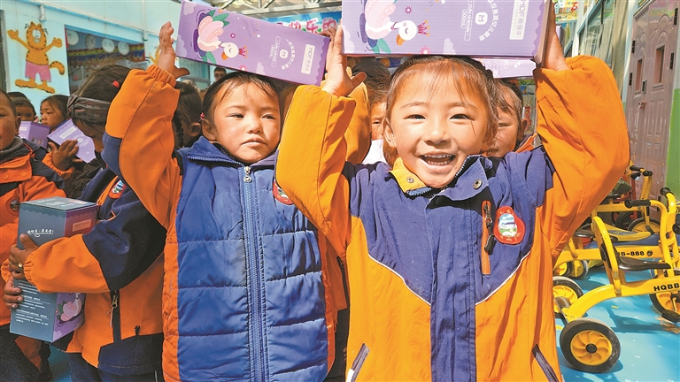 近日,日喀則市里孜出入境邊防檢查站聯(lián)合上海佳軒物流有限公司,為仲巴縣里孜鎮(zhèn)幼兒園的孩子們送上了總價值12.5萬元的棉衣、棉褲、文具等禮品,用愛心守護國門下一代的燦爛笑容。