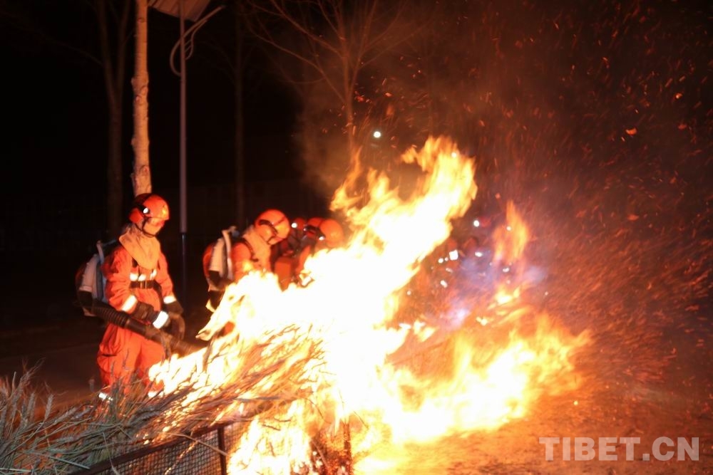 實拍:西藏昌都森林消防員夜間實戰訓練