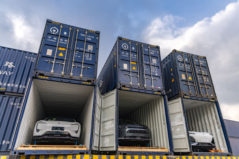這是近日在重慶團結村中心站拍攝的等待出口的新能源汽車。新華社記者 黃偉 攝