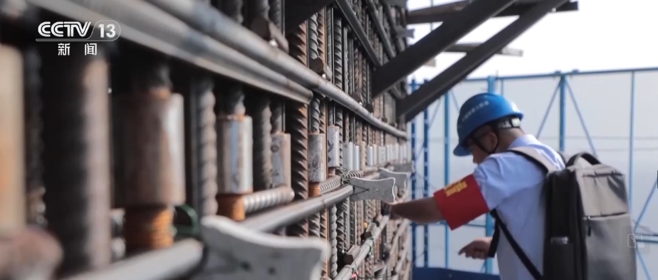 黃沖是這支年輕團隊的主力隊員。現場,他正在檢查墊塊綁扎和鋼筋焊接情況,一旦出現墊塊下垂或者偏位,就會導致后續鋼筋保護層控制不到位。