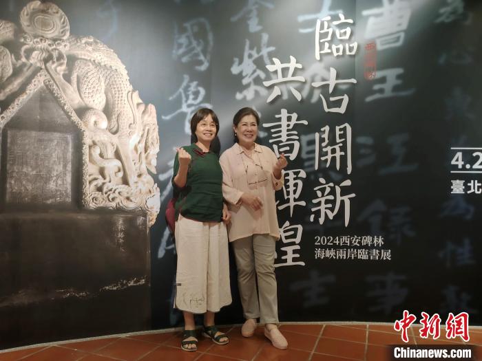 5月11日,臺灣知名藝術史學者朱惠良在臺北為“臨古開新 共書輝煌——西安碑林海峽兩岸臨書展”作題為“忠義奮發,意不在字——顏真卿《爭座位帖》”的書法講座。圖為朱惠良(右)與聽講者合影。中新社記者 劉舒凌 攝