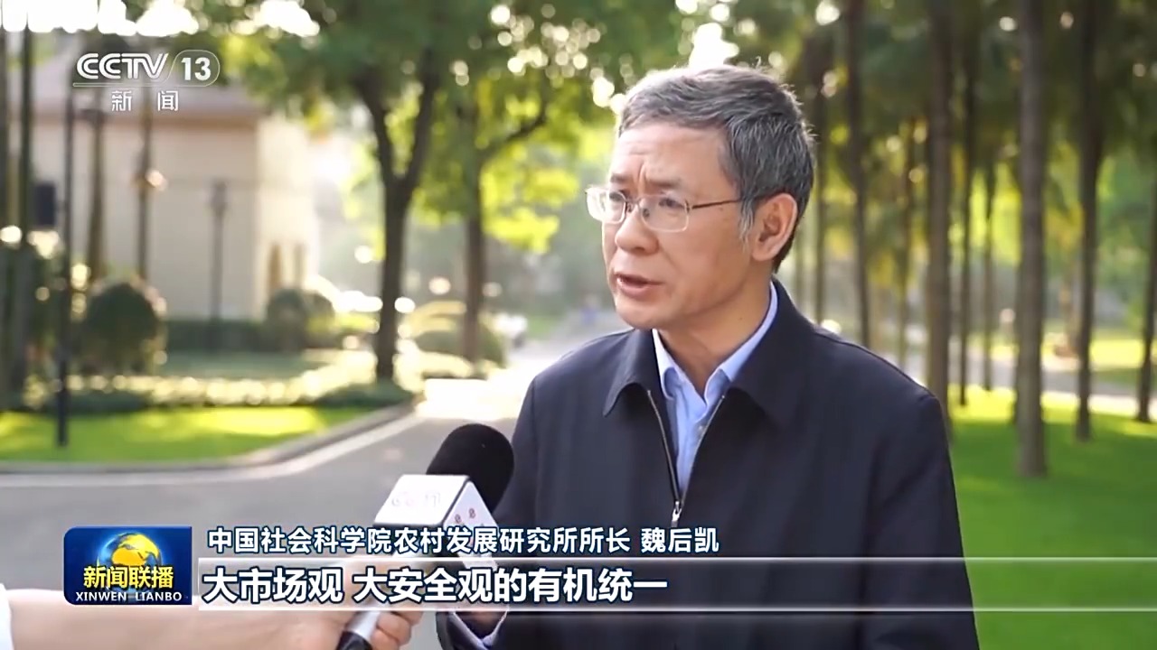 中國社會科學院農村發展研究所所長 魏后凱:大食物觀是大資源觀、大農業觀、大市場觀、大安全觀的有機統一,是習近平新時代中國特色社會主義思想的重要組成部分。從自身實際出發,因地制宜,全方位多途徑地開發食物的資源,為新時期保障國家糧食安全,加快農業強國建設提供了一種新的理念、新的視角和新的方法。