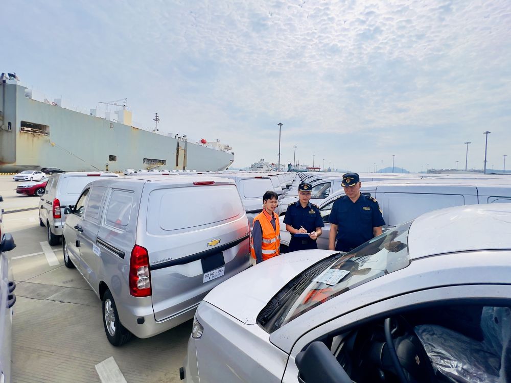 廣州海關所屬南沙海關關員對出口汽車進行監管。(受訪者供圖)