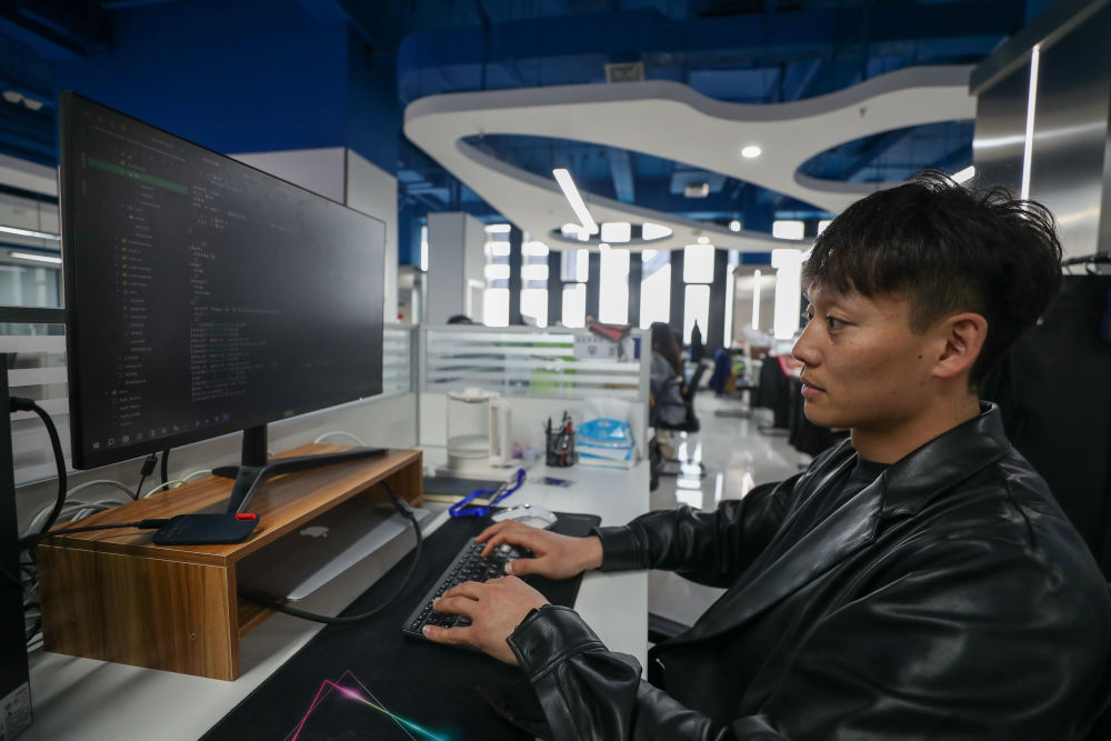 2024年4月18日,在哈爾濱工業大學人工智能研究院有限公司,科研人員在進行數據編程。新華社記者 張濤 攝
