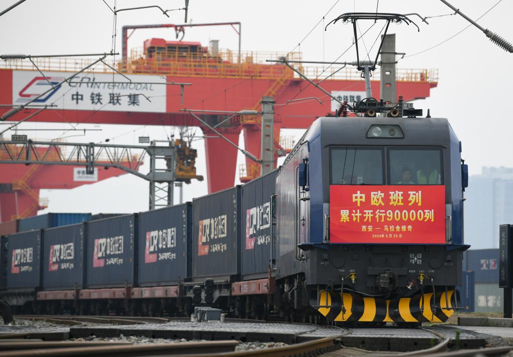 記者從中國國家鐵路集團有限公司(下稱國鐵集團)獲悉,2024年5月25日8時40分,隨著X8157次中歐班列(西安—馬拉舍維奇)從西安國際港站開出,至此中歐班列累計開行突破9萬列,發送貨物超870萬標箱、貨值超3800億美元,保持安全穩定暢通運行。