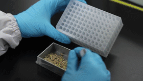 在湖南長(zhǎng)沙的岳麓山種業(yè)創(chuàng)新中心,分子育種實(shí)驗(yàn)室研究員李樂正在把脫殼的水稻種子放進(jìn)樣品盤里,隨后將樣品放置在全自動(dòng)移液工作站上,進(jìn)行樣品DNA的提取。該樣品是一份田間試驗(yàn)的低鎘水稻種子,這是岳麓山種業(yè)創(chuàng)新中心受種業(yè)企業(yè)委托選育的品種。