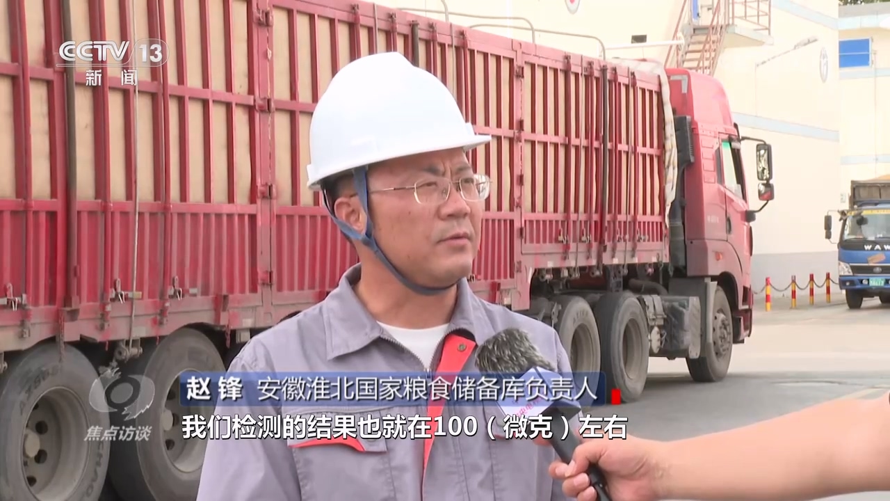 安徽淮北國家糧食儲備庫負責人趙鋒:“嘔吐毒素標準是每一千克小于1000微克,我們檢測的結果也就在100微克左右,有的檢不出來。玉米赤霉烯酮(標準)是每一千克小于60微克,檢測結果基本上在10微克以內,小麥的質量非常好。”