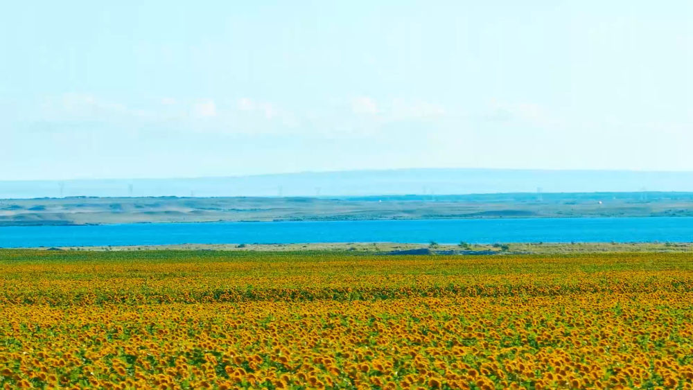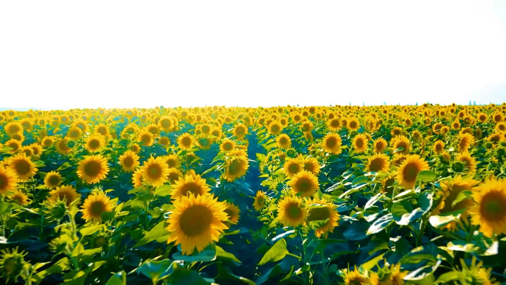 7月,新疆阿勒泰市向日葵燦爛盛放,盛開的向日葵迎風搖曳,一望無際的金黃色花海將田野裝扮得如詩如畫。