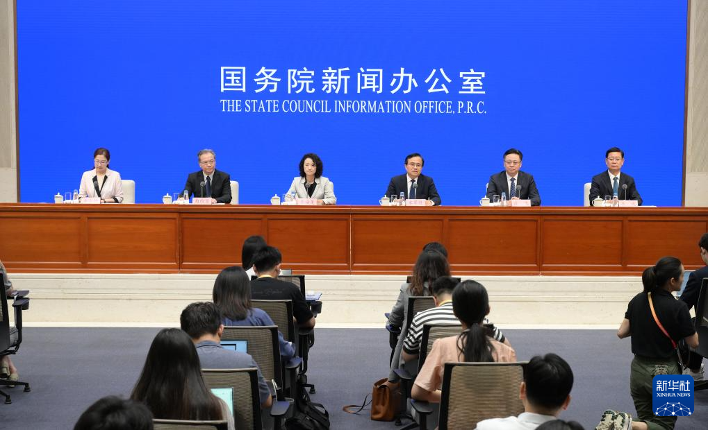 8月16日,國務院新聞辦公室在北京舉行新聞發布會,商務部國際貿易談判副代表李詠箑、山東省副省長宋軍繼、商務部國際貿易經濟合作研究院副院長曲維璽、山東省商務廳廳長陳飛、青島市副市長王波介紹2024年跨國公司領導人青島峰會有關情況,并答記者問。新華社記者 李賀 攝