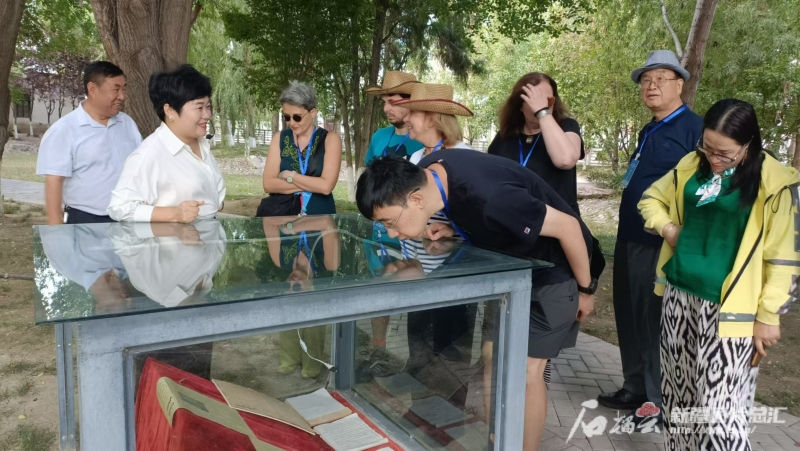 8月16日,中外漢學家、翻譯家、作家在察布查爾錫伯自治縣察布查爾報社參觀。石榴云/新疆日報記者 宋衛國攝