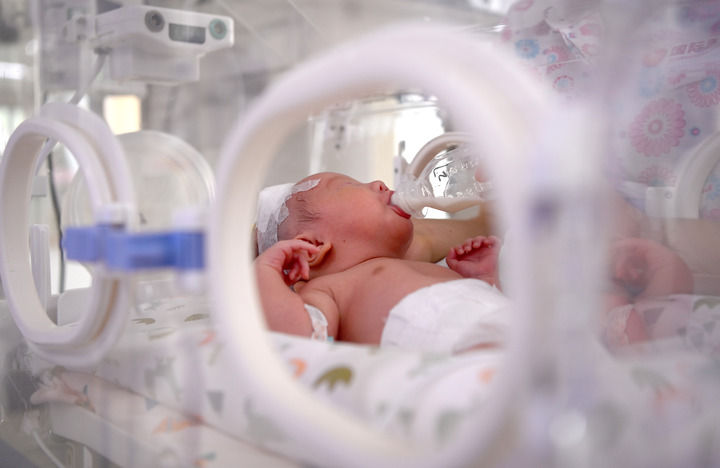 2024年6月1日,在西安國(guó)際醫(yī)學(xué)中心醫(yī)院新生兒科病房,護(hù)士為新生兒喂奶。 新華社記者 劉瀟 攝