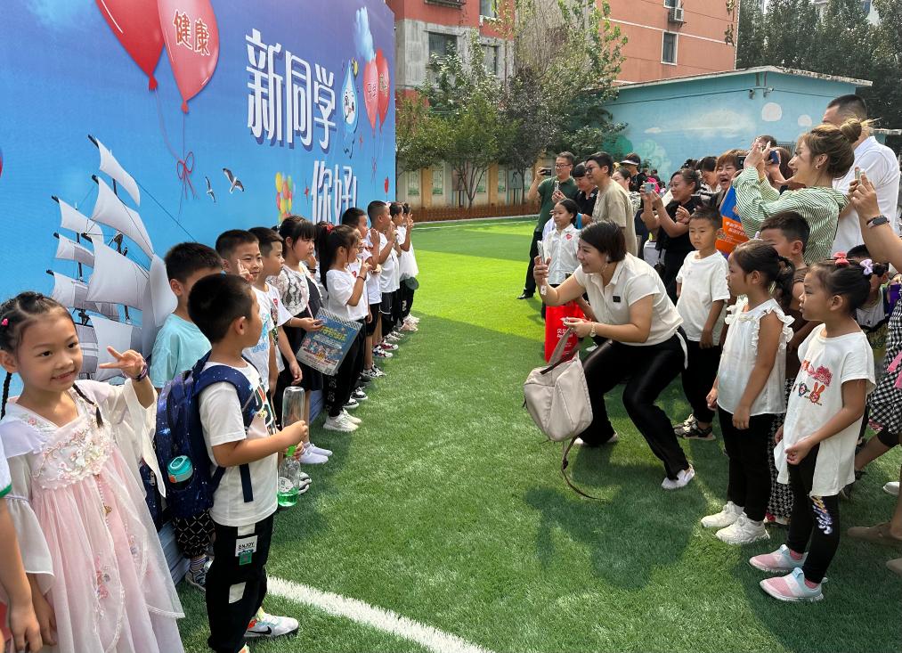 在沈陽市珠江五校教育集團(tuán)怒江校區(qū),千余名小學(xué)一年級新生來校報到。“新同學(xué)你好”的巨型展板下,孩子們展露笑臉、拍照留念,準(zhǔn)備邁入人生的嶄新階段。