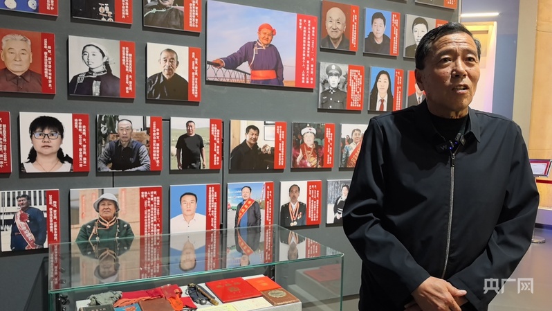 9月4日,淅淅瀝瀝的雨下個不停。下午三時許,孫保衛來到四子王旗博物館展廳,在“人民楷模”都貴瑪展區駐足良久。他是都貴瑪額吉養育的28個“國家的孩子”中年齡最小的一個。