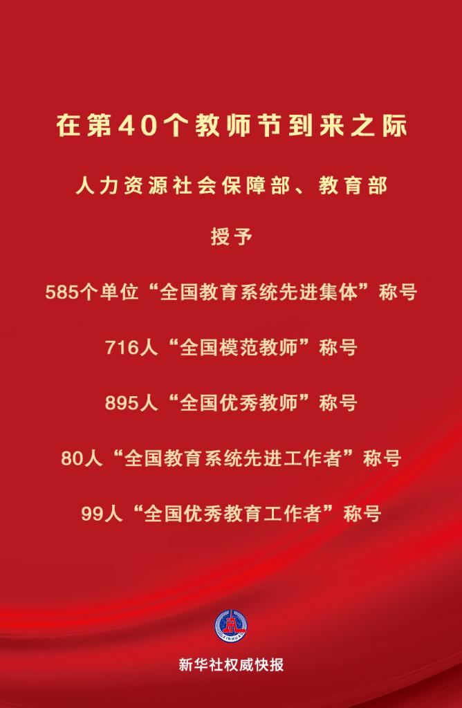 • 新華社權威快報|慶祝第40個教師節 全國585個單位、1790人受表彰