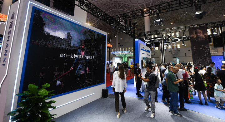 數博會上,國產游戲《黑神話:悟空》備受矚目。山西展團以游戲中“悟空”路線為主題,重點展示了一批介紹山西古建筑、歷史文化遺產的出版物,“悟空拍照區”成了“熱門打卡地”。