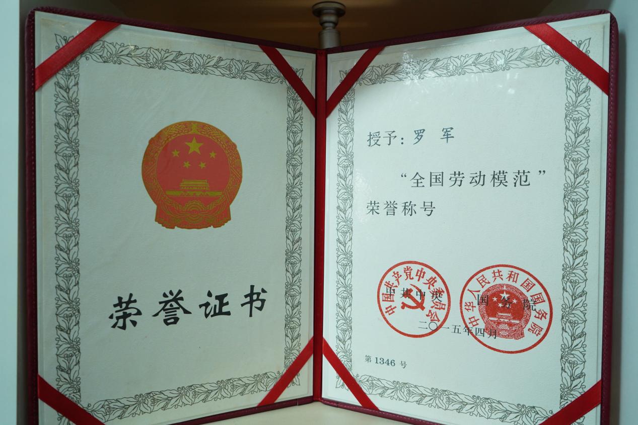 圖為羅軍被授予“全國勞動模范”榮譽(yù)稱號的證書。