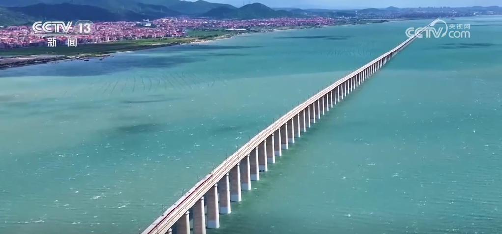 這是我國首條設計時速350公里的跨海高鐵——福廈高鐵湄洲灣跨海大橋。碧波之上,大橋氣勢恢宏,連接兩岸。在跨海大橋上行車,受海上風力影響很大,通過這樣的路段通常需要減速慢行。但福廈高鐵實現了“跨海過橋不減速”,在不設風屏障等防風措施下,列車可在8級大風下以時速350公里速度行駛。國慶假期,福廈高鐵加開195趟列車,滿足旅客出行需求。