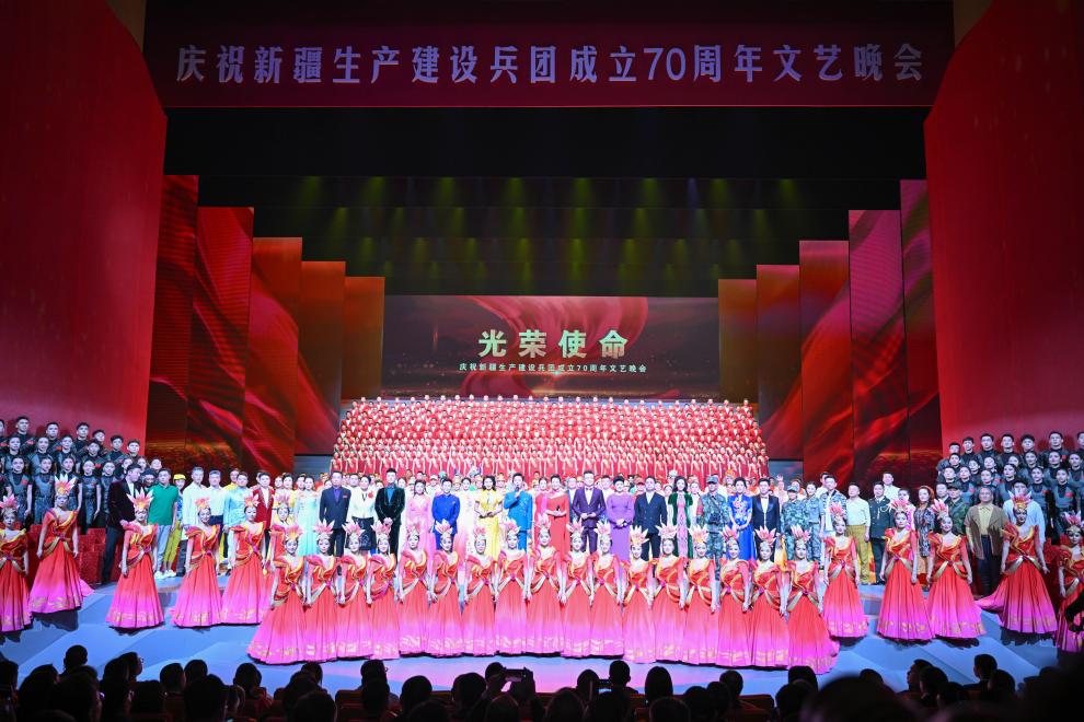 10月6日,慶祝新疆生產(chǎn)建設(shè)兵團(tuán)成立70周年文藝晚會《光榮使命》在烏魯木齊文化中心大劇院舉行。