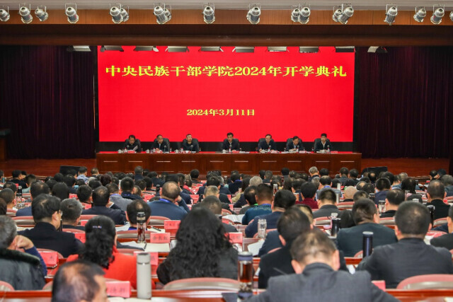 ▲3月11日,中央民族干部學院2024年開學典禮暨全國民委系統鑄牢中華民族共同體意識輪訓班(第一期)舉行開班式。來源:中央民族干部學院