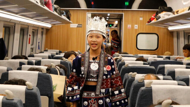 ▲金秋九月,云南寧洱哈尼族彝族自治縣的青少年宣講團,在中老鐵路寧洱至昆明路段宣講民族團結誓詞碑故事。新華社發